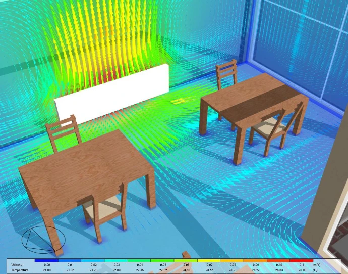 Analysis of HVAC system performance using CFD simulation to optimise efficiency, installation and operation in real-world conditions.