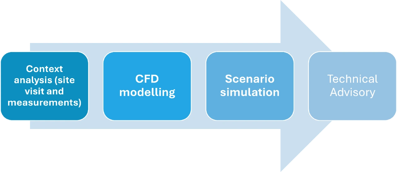 Analysis of air flows and heat exchange in buildings to optimise energy performance, comfort and reliability of installations.